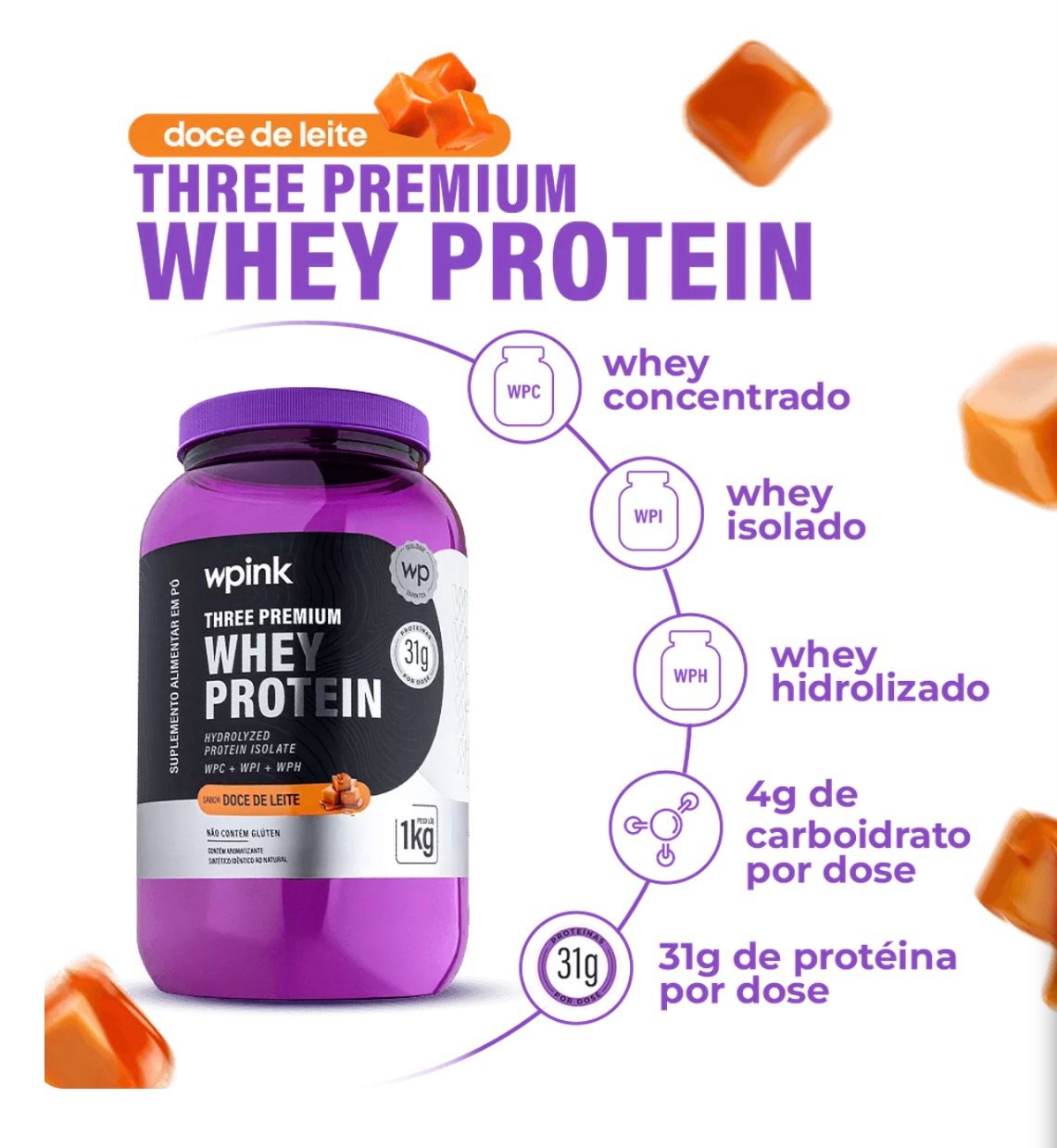 Three Premium Whey Protein – Sabor Doce De Leite (1 kg)